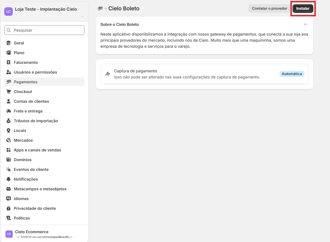 Após instalar o plugin Cielo Boleto, entre em contato com os especialistas da Cielo para solicitar a liberação do seu acesso ao painel Cielo Payment App.