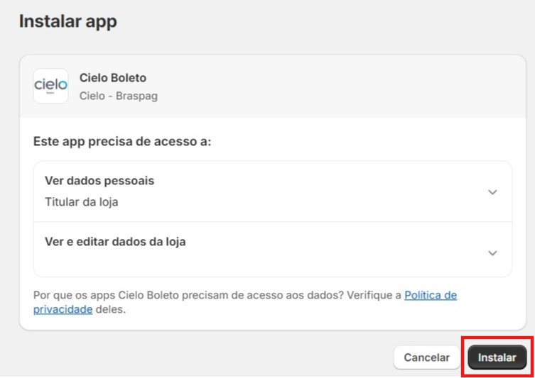 1. ApĂłs ser redirecionado para a Shopify, clique em Ativar.