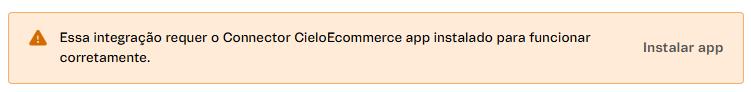 - Após salvar, aparecerá um aviso para instalação do Connector CieloEcommerce app. Clique em Instalar app.