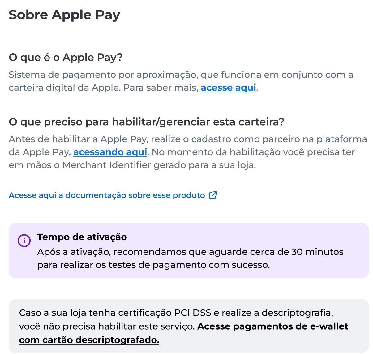 - Done! The wallet enablement has been successfully completed. Now you can access the documentation to finalize the integration with the provider.