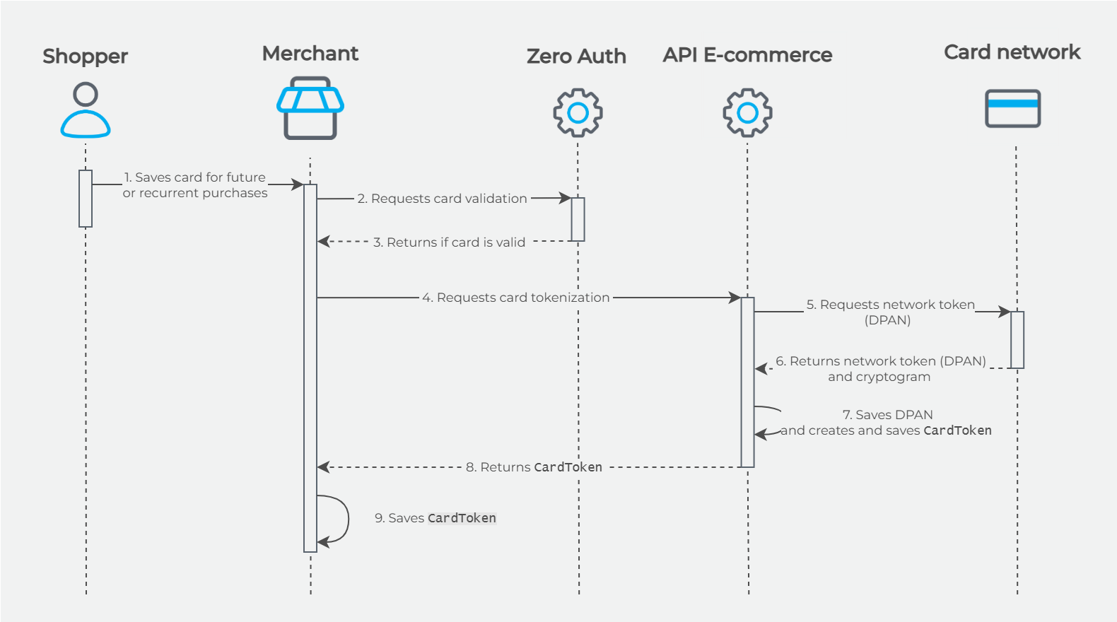 Mastercard | The merchant stores and sends the CardToken in the authorization, and Cielo associates the CardToken with the network token. | Merchants already using tokenization and storage in the vault (CardToken ) can enable network tokenization with Cielo support. |