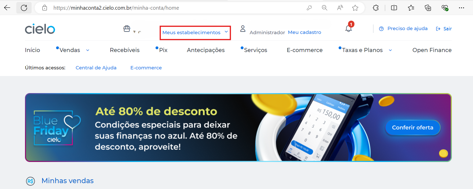 - Caso tenha mais de um estabelecimento e precise trocar, clique em Meus estabelecimentos;