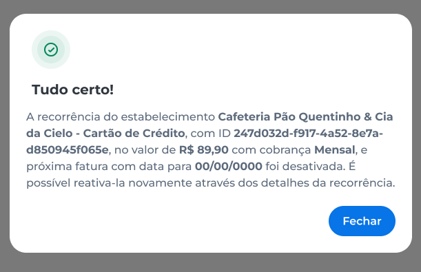 - Pronto, a sua recorrência foi desativada com sucesso: