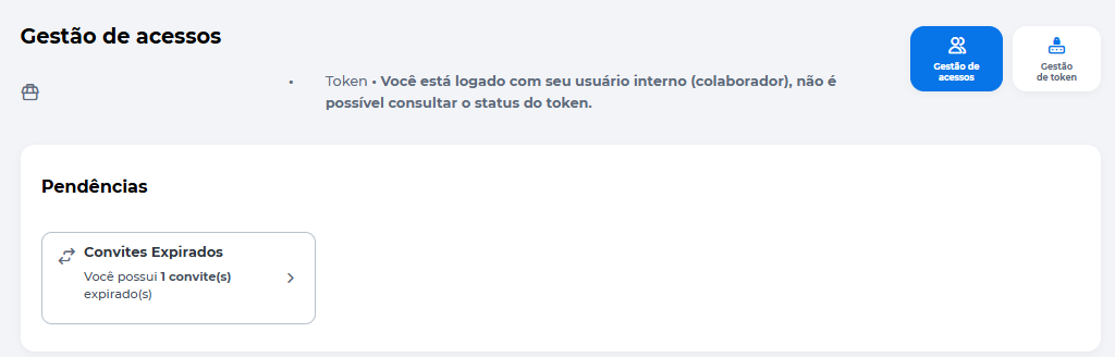Caso tenha usuários sem perfil definido ou convites expirados, eles aparecerão como Pendências: