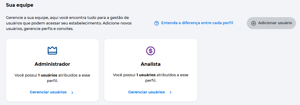 Para saber quais são os acessos permitidos para cada perfil, clique em Entenda a diferença entre cada perfil