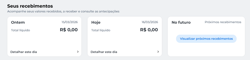Em Seus recebimentos, você verá seus valores recebidos, a receber e consultar as antecipações: