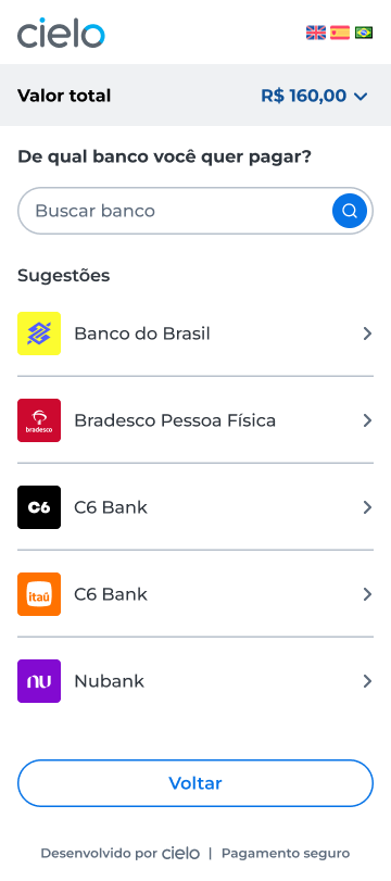 3. Seleciona o banco com o qual deseja pagar: