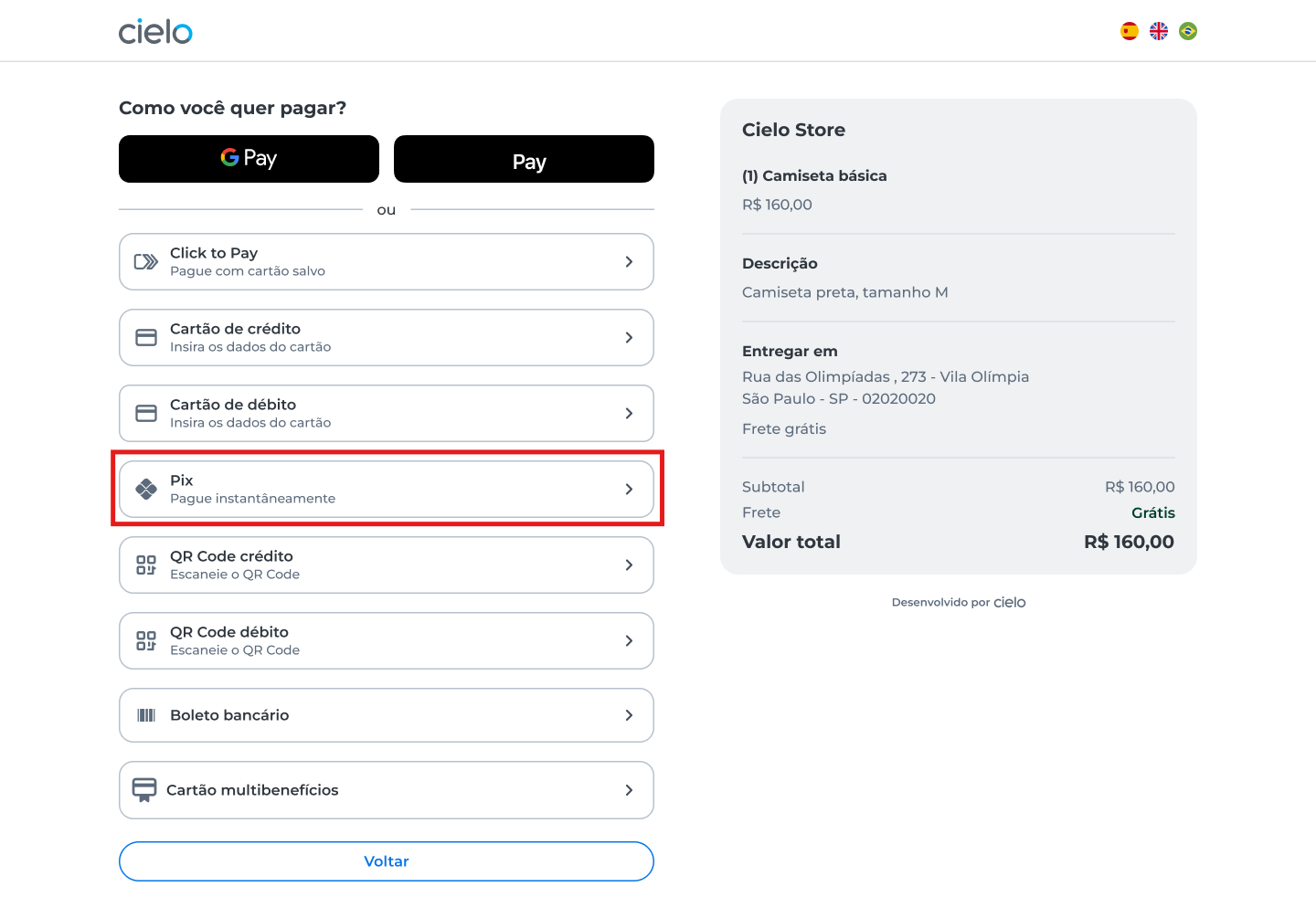 Essa página descreve a jornada de pagamento para a pessoa compradora ao escolher pagar com Pix