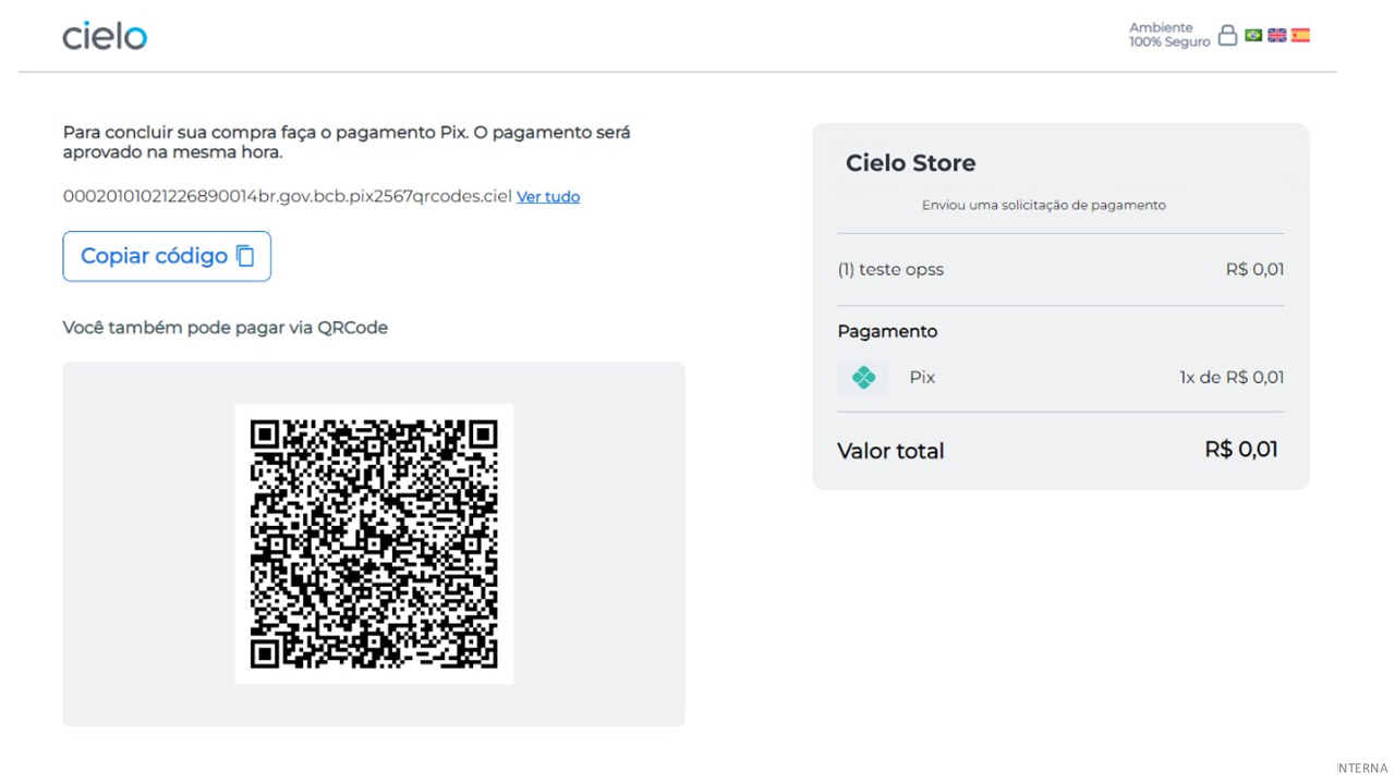Confira a seguir um exemplo de como são as telas de pagamento via Pix na jornada de pagamento desktop do seu cliente, dentro do cenário de sucesso (pagamento aprovado).