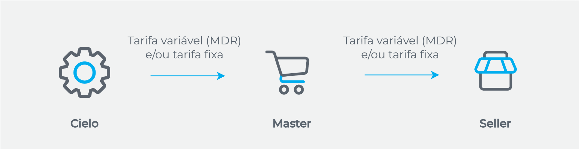 A tarifa variável é o principal componente da divisão. O valor destinado ao master (sua comissão) já deve considerar o MDR negociado com a Cielo.